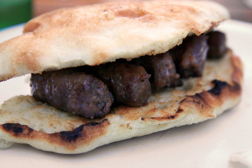 -  Чевапчичи в пите. Маленькие колбаски из мяса и специй заворачиваются в лепешку. Сюда же кладутся овощи и листовой салат.