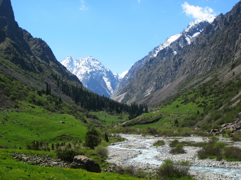 В городе есть дубовая роща, музеи, кафе, магазины, а совсем рядом находится один из красивейших национальных парков Киргизии Ала-Арча, где я потеряла голову от невероятных пейзажей и инопланетного сочетания заснеженных вершин, живых горных ручьев и зелёных холмов.