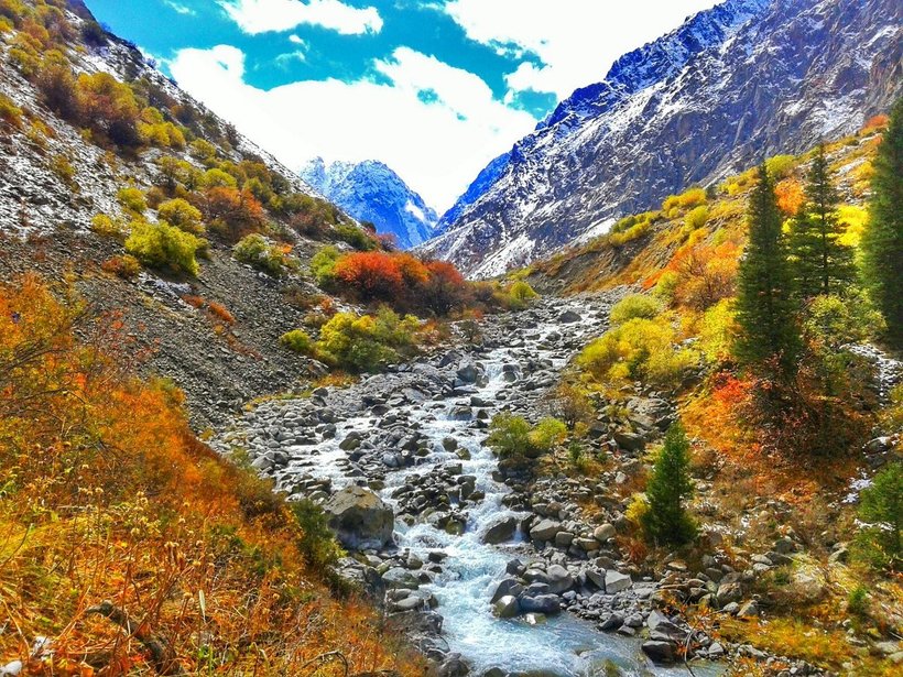 Тем не менее знаменитое место «У рыбака» накормит вас в любой сезон. Летом удобно организован трансфер в ущелья Григорьевское и Семеновское. Я была осенью, поэтому пришлось озаботиться местным транспортом. Но, учитывая знание русского языка и доброжелательность киргизов, это было совсем несложно.
