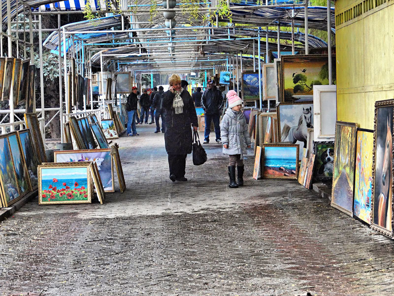 В открытой галерее «Эркиндик» в Бишкеке можно посмотреть и приобрести работы местных художников с изображениями пейзажей и сценок из повседневной жизни.