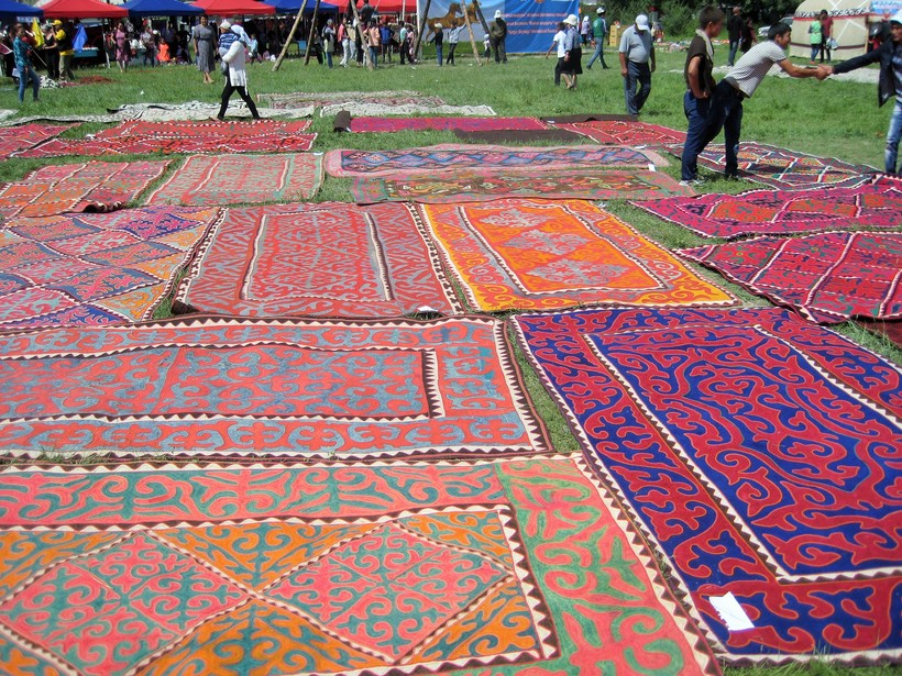 - Ковры из войлока шырдак с национальными орнаментами. Хороший и качественный ковер не может стоить менее 250 USD. Удобно оформить доставку товара в Россию или Европу, подобная услуга стоит около 100-150 USD.