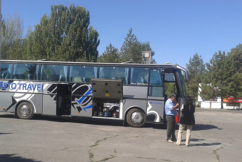 По приезде в Бишкек не нужно никуда ехать, можно купить билет на автобус до Чолпон-Аты прямо здесь за 3,6-3,8 EUR/300-320 KGS.
