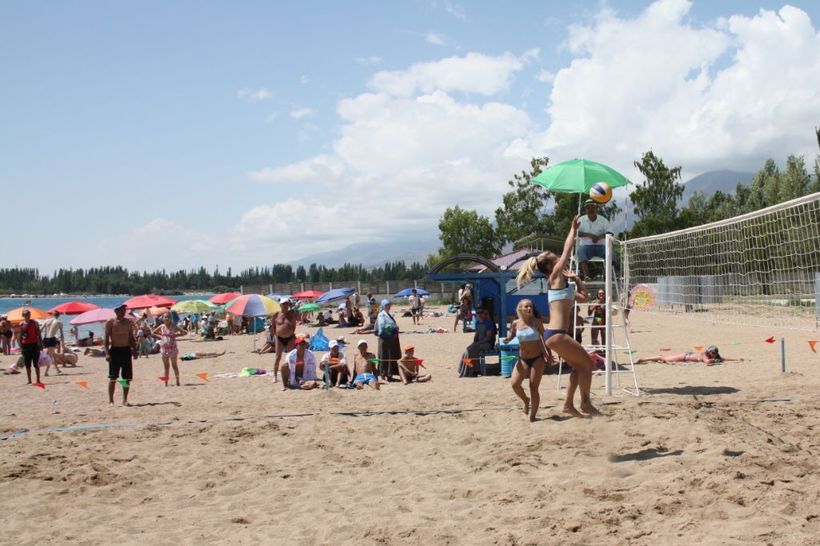 Главный городской пляж. Больше напоминает настоящий морской пляж, который радует своей чистотой. Очень удобно купаться с детьми, благодаря пологому заходу в воду. Протяжённость зоны почти 2 км, поэтому места хватает всем. Ближе к середине расположены несколько горок для детей и взрослых. Последние выходят прямо в озеро. Чтобы скатиться 2-3 раза, нужно купить билет в кассе за 0,6-0,8 EUR/50-70 KGS. Тут же можно взять катамаран, водный мотоцикл, или полетать над озером на парашюте за 2,4 EUR/200 KGS. Пляж окружён уютными кафе, некоторые из них выглядят как юрты, где можно поесть, сидя на корточках. Стоимость плотной трапезы на 2-3 человек не больше 6 EUR/500 KGS.