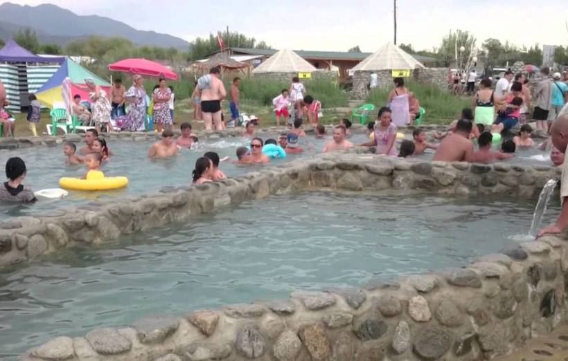 Термальные источники. За время отдыха мы посетили несколько источников – Ак-Бермет, Таш Суу, Спутник. Ак бермет расположен в 6 км от Чолпон-Аты в селе Кара Ой. К нему нужно ехать в сторону посёлка Балыкчи. В нём есть не только 7 бассейнов с минеральной водой с температурой +37-44 °С, но и отель, в котором можно поселиться. Время работы 9-20, стоимость входа – 6 EUR/500 KGS за 1 час (дети до 5 лет заходят бесплатно). Для того, чтобы добраться до Таш Суу, нужно проехать около 50 км от Чолпон-Аты до села Орукту, а потом проехать еще около 1 км в сторону озера. Мы ориентировались на стрелки с надписью «горячий источник». Здесь количество бассейнов меньше – всего 4, но зато можно набрать минеральную воду прямо из крана. За вход мы заплатили 3,6 EUR/300 KGS за час пребывания, а дети до 6 лет идут бесплатно. Спутник был самым скромным из всех горячих источников. Он находится в 10 км от Чолпон-Аты в сторону Каракола и представляет собой крытый ангар с одним бассейном, в котором температура составляет +35-36 °С. Зато стоимость входа доступная – всего 0,9 EUR/80 KGS.