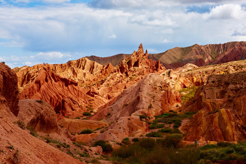 Джети Огуз. Ехать в знаменитое ущелье почти 4 часа, ведь расстояние до него – 160 км. Однако стоит потратить это время, чтобы полюбоваться живописными красными горами, которое киргизы называют Семью Быками. Есть здесь и гора с названием Разбитое Сердце тоже необычного бордово-красного цвета. Но это только начало путешествия. Для самых выносливых организуют пеший или конный поход вглубь ущелья с посещением пещер и горных водопадов. Самый известный называется Девичьи слёзы. Впечатлений после такой экскурсии масса, даже нет слов, чтобы описать восторг, который испытываешь от прогулки.