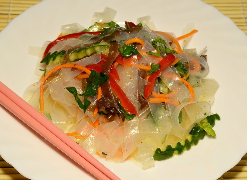 Ашлям фу больше похоже на лапшу с крахмалом, зеленью и овощами под необычным соусом. Переводится, как «холодный крахмал». Это блюдо из традиционной дунганской кухни. Вкус немного непривычный, но нам понравилось.