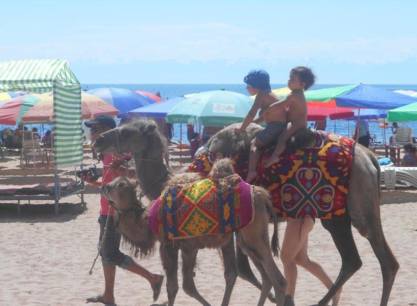 На пляже они всегда были заняты купанием, катанием с надувных горок, копанием в песке. Здесь же можно сфотографироваться верхом на верблюде или на фоне кафе, стилизованного под юрту.