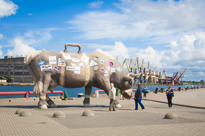 Но что-то есть в этом городе невыразимо очаровательное. Колорита Вентспилсу добавляют огромные статуи коров веселенькой расцветки, расставленные в неожиданных местах.