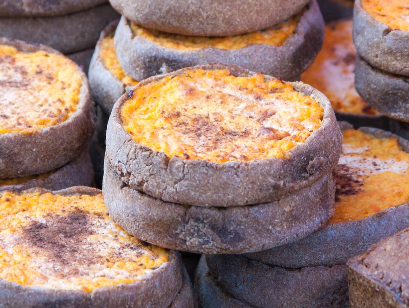 - Скландраусис. Это открытые пирожки с сытной начинкой, обычно из моркови или картофеля, приправленных сыром, сливками и специями. Если вы следите за каллориями, ну... сделайте исключение на этот раз! Скландраусис редко продаются в магазинах, они встречаются в кондитерских, пекарнях, и обязательно на любом сезонном рынке, а также в Риге на ежесубботнем базарчикt в квартале Калнциема.
