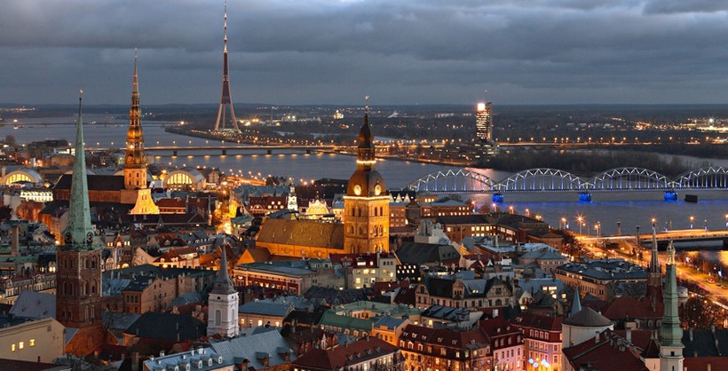 Тут самое интересное! В вагоне я села слева, лицом по направлению движения. Большинство разношерстных иностранноязычных лиц туристического вида сели справа и достали гаджеты. Может туристическая группа? Ан-нет! Когда электричка дернулась в путь и мы стали переезжать реку (ту самую Двину, про которую я уже говорила несколько раз), справа открылся прекрасный вид на знаменитую «открыточную Ригу» с башенками соборов старого города, с видом на Домский собор и Церковь святого Петра и великолепные мосты, перекинутые через реку рукой Рижских архитекторов. А как красиво чередой огней город мерцает ночью! Все принялись снимать, и я тоже не удержалась.