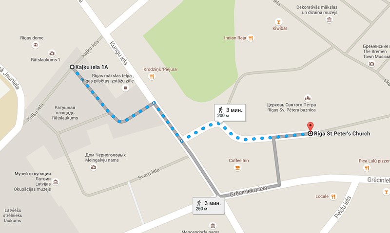 По знакомой уже улице Кунгу, с неё на улицу святого Петра, далее свернуть направо по улице Скарню (Skarņu iela), и вы на месте.