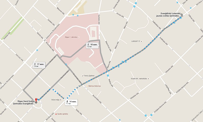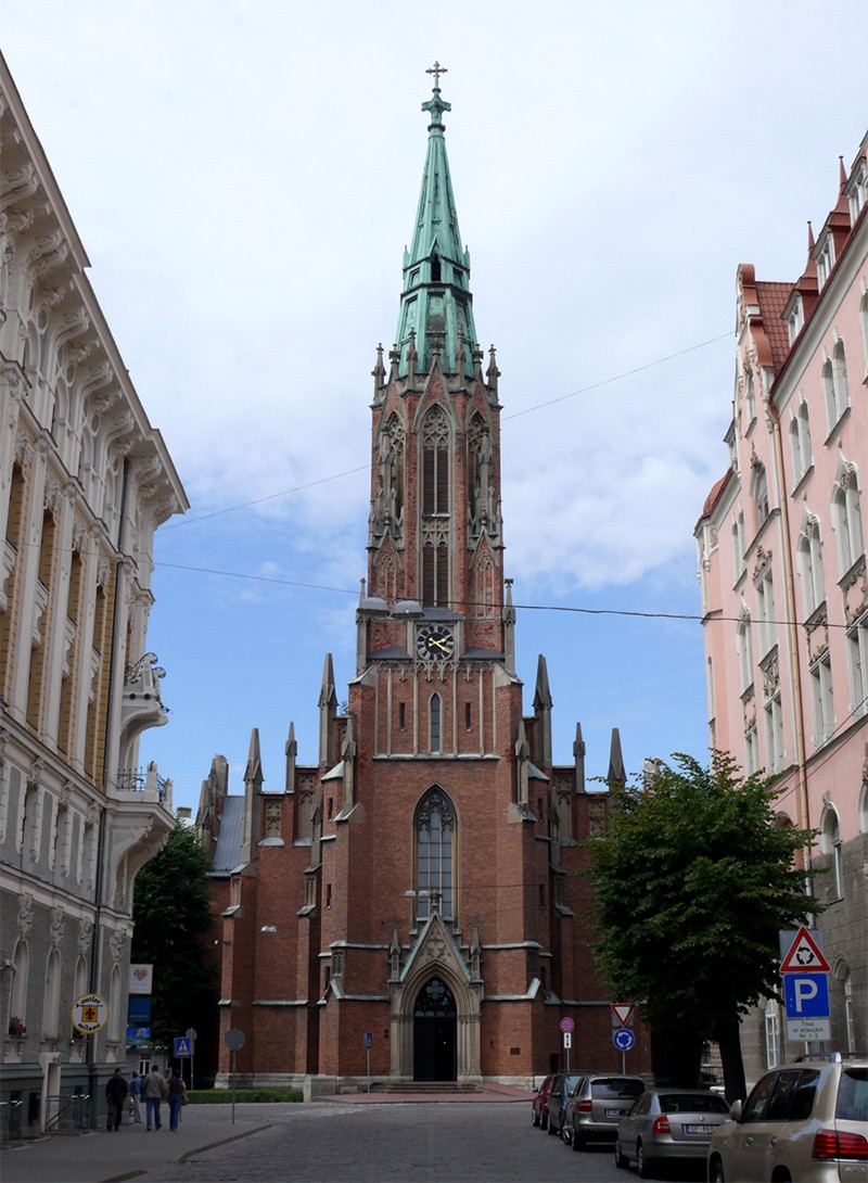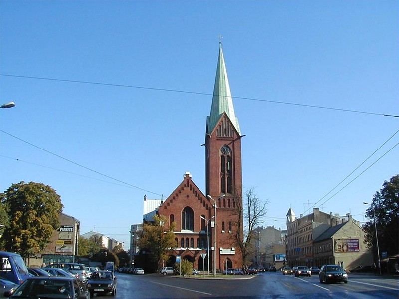 Что ж, эта церковь уже не «под боком» старого города, так что придётся прогуляться. Вам необходимо будет выйти на улицу Бривибас и пройти по ней до улицы Гертруды (Ģertrūdes iela), чтобы посмотреть налево и тут же увидеть цель своего визита.