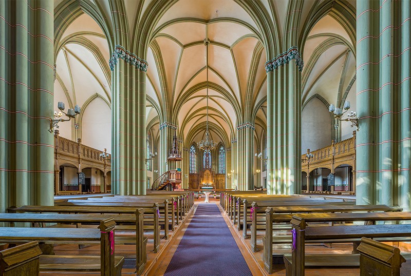 В самом храме также есть что посмотреть: под готическими сводами собора хранятся старинные артефакты истории города. Недалеко от лестницы, например, чинно стоит медный петух, украшавший вершину шпиля до 1941 года и выполнявший функцию флюгера. Также в церкви теперь находится оригинал статуи Роланда, некогда украшавшей Ратушную площадь. Помимо этого можно взглянуть на первые водопроводные трубы, а также предметы убранства.