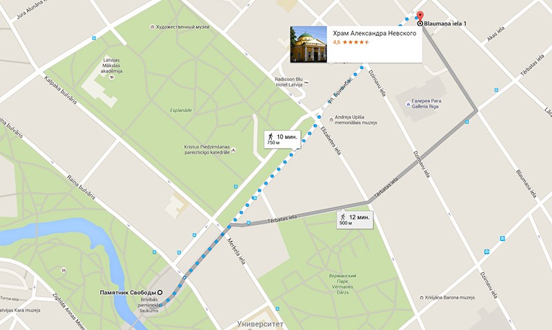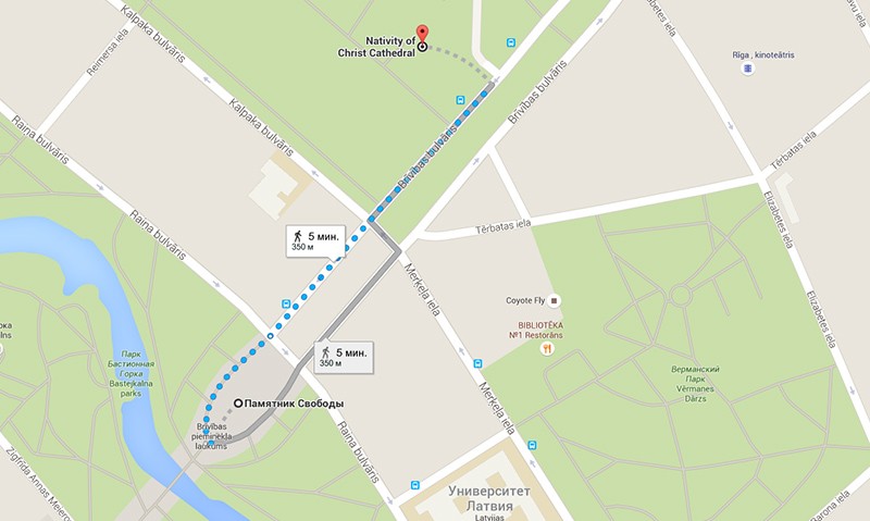 Как я уже писала, найти собор очень легко: он отчётливо виден от памятника Свободы, и чтобы дойти до него, нужно просто следовать к куполам по улице Бривибас.