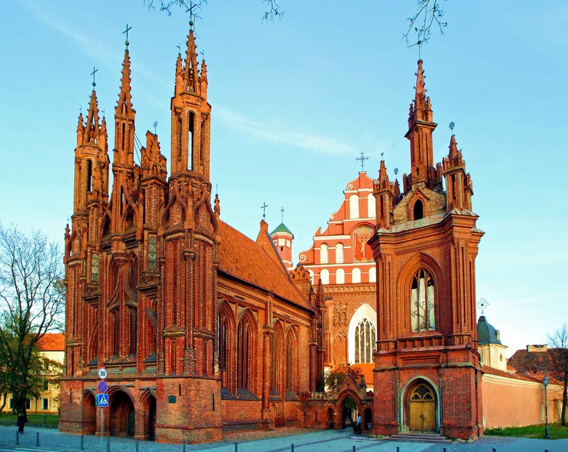 Посещая незнакомый для меня город, я стараюсь обязательно посетить местную смотровую площадку, чтобы насладиться видами не только изнутри, а так сказать «снаружи». Поднявшись на фуникулёре или самостоятельно, сможете запечатлеть в памяти и на фото столицу Литвы с высоты птичьего полёта. - Костёл Святой Анны (Šventos Onos bažnyčia). Одна из интереснейших достопримечательностей Вильнюса. Величественный и загадочный, этот собор, на мой взгляд, не имеет себе равных в готической архитектуре.