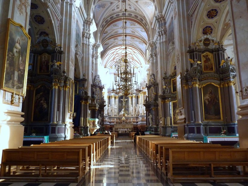 Что примечательно, каждое лето на территории Пажайслисского монастыря проходит международный фестиваль музыки. - Собор Святых Петра и Павла (Šv. apaštalų Petro ir Povilo arkikatedra bazilika). Храм очень интересен внутренним содержанием.