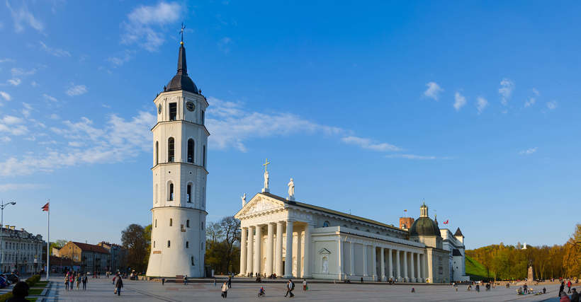 - Ратушная (Rotušės aikštė) и Кафедральная (Katedros aikštė) площади. Моё знакомство с городом началось с его сердца – с этих площадей в самом центре Вильнюса. Они находятся в 5 минутах ходьбы друг от друга. У Ратуши проходят различные городские торжественные мероприятия. Вам как путешественнику возможно пригодится Вильнюсский информационный туристический центр, который располагается внутри здания. А на Кафедральной площади – собор Святого Владислава и Станислава (Švento Stanislovo ir Švento Vladislovo arkikatedra bazilika), главный католический храм страны. В 1921 году папа Бенедикт II присвоил ему звание Малой базилики. Внутри старинные картины, фрески XVI и последующих веков.