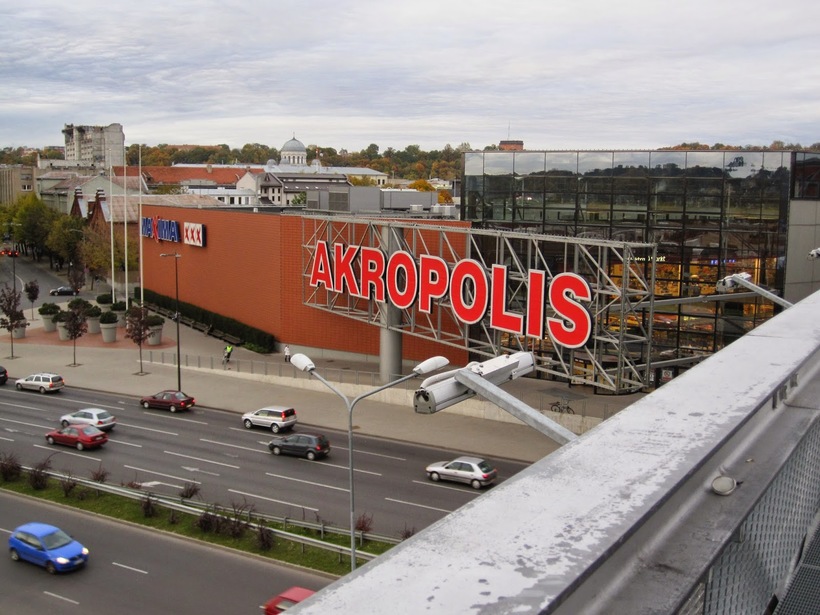 - Akropolis – торговый центр был построен в 2007 и находится в 4-этажном здании в центре города. Здесь есть большое количество магазинов розничной торговли, ресторанов и кафе, развлекательных организаций. Торговый комплекс также включает в себя многоэтажную парковку (бесплатно), каток, окруженный фудкортом, боулинг, казино и кинотеатр.
