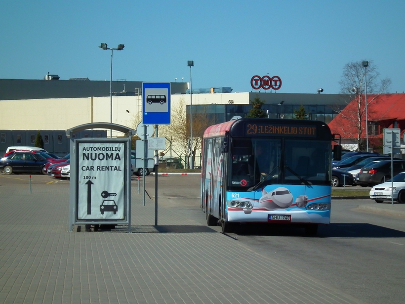 От аэропорта в центр Каунаса можно доехать на городском автобусе №29, который находится с правой стороны у выхода. Он едет по маршруту: Аэропорт Каунаса – Кармелава – (прибывает в Каунас) – проспект Саванорю – Старый Город – Центральный автовокзал – Центральный железнодорожный вокзал. Билеты от 1€ можно приобрести у водителя. Расписание движения автобусов хорошо синхронизировано с графиком авиарейсов.