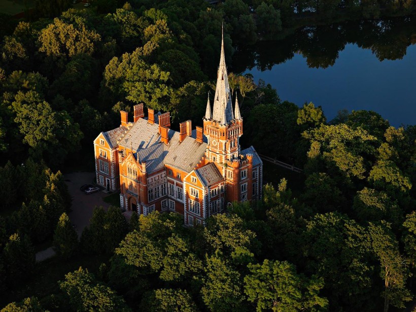 Там имеет смысл посетить еще один дворец, который принадлежал роду Тышкевичей. Построенный в неоготическом стиле, внешне он напоминает собор. В настоящее время дворец закрыт для посещения, однако даже в таком состоянии, на мой взгляд, он достоин посещения. Также можно прогуляться и по остаткам некогда живописного парка, где помимо дворца сохранились въездные ворота, некоторые хозяйственные постройки и водонапорная башня. На сегодняшний момент есть надежда, что дворец наконец благоустроят, сделав внутри музей или гостиницу.