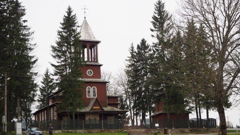 Помимо замка обращает на себя внимание костел Святого Казимира. Эта деревянная церковь внешне напоминает восточную пагоду. Построена она была только в 1931 году, когда эти земли принадлежали Польше. Если хотите узнать расписание богослужений и часы работы, воспользуйтесь контактами по ссылке.