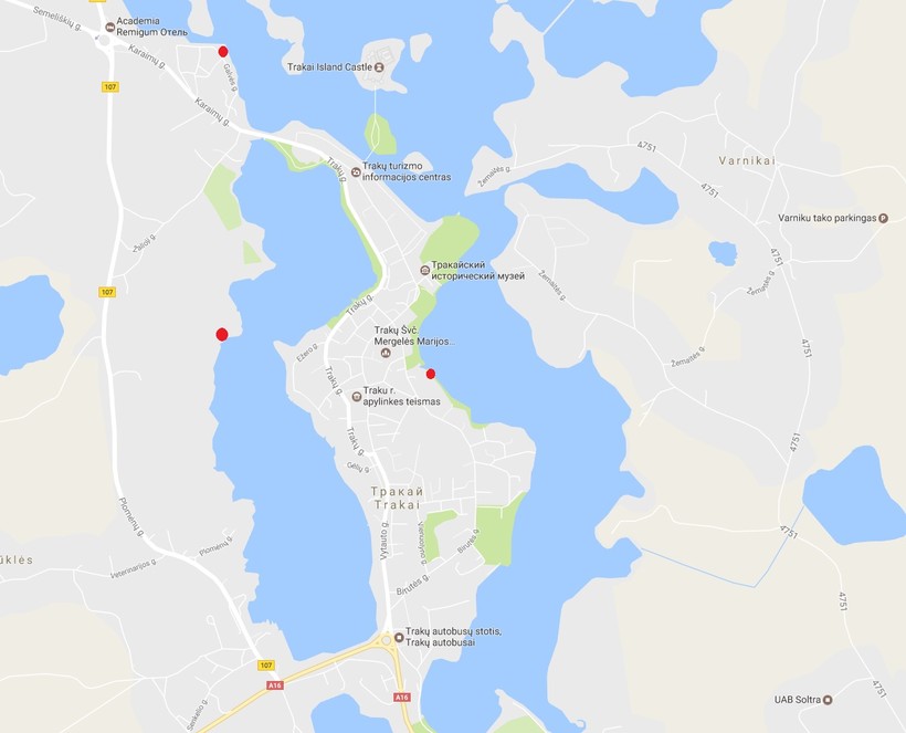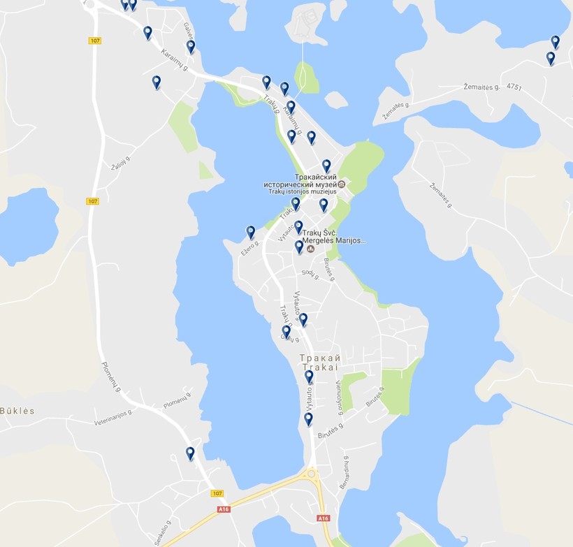 Есть ли возможность доехать в Ужутракис на наземном общественном транспорте, узнавайте на тракайском автовокзале или в центре туристической информации, который я отметил на карте Тракая ниже.