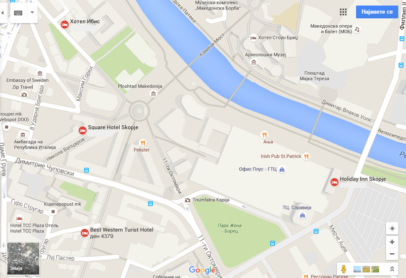Что касается скопских отелей, расположенных недалеко от железнодорожного и автовокзалов, то я спешу вас обрадовать: центр столицы с десятками отличных отелей находится на расстоянии 1 км от вокзалов. Это приблизительно 15 минут ходьбы. Можно воспользоваться и такси.