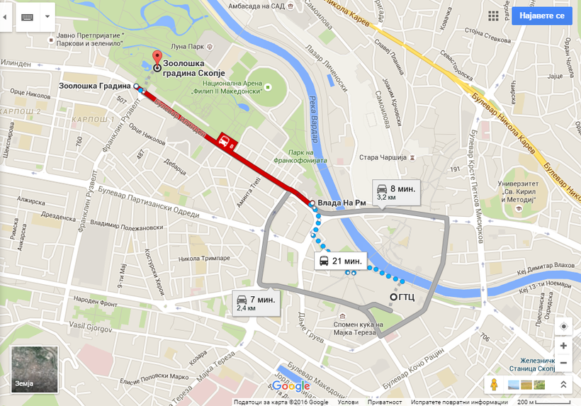 От центра Скопье до зоопарка можно добраться на автобусах №8 и №11.