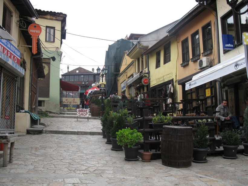 На протяжении всего пребывания в македонской столице меня не оставляло чувство какого-то спокойствия и уюта. Тому «виной» черепичные крыши домиков с зелёными двориками, мощёные улицы, клумбы с прекрасными цветами, ароматы кофе и печева, горы, похожие на спящих драконов. Всё это создаёт атмосферу балканской сказки.
