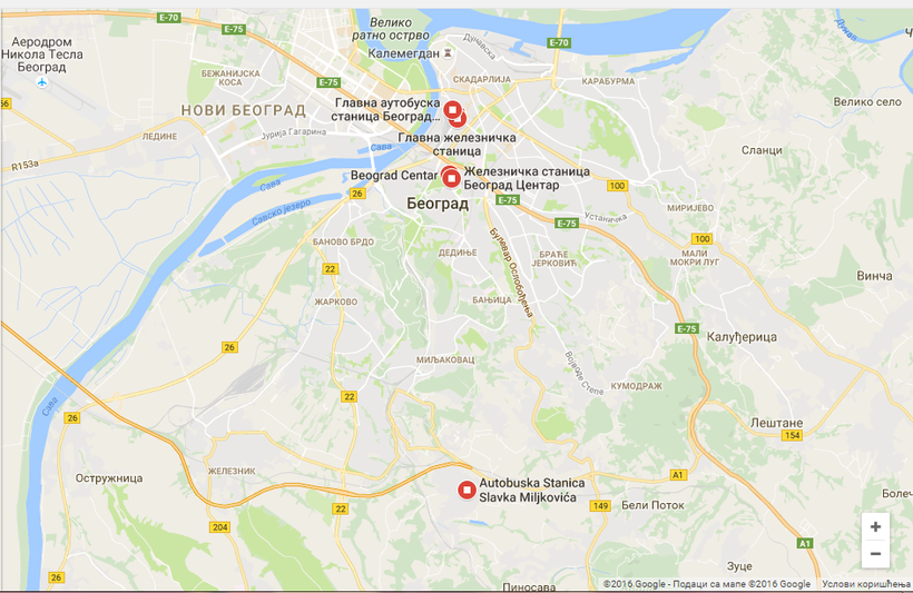 Я хочу заметить, что не смотря на внушительную площадь Белграда, автовокзал и железнодорожный вокзал находятся близко, даже не придётся пользоваться такси.