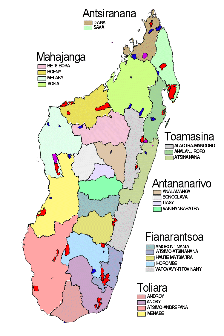 Остров Мадагаскар делится на шесть регионов, которые, в свою очередь, подразделяются на 22 провинции.
