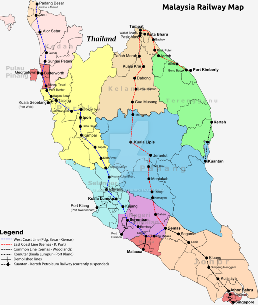 На текущий момент в Малайзию разумнее приехать поездом, если вы находитесь в соседнем Таиланде или Сингапуре. Эти три страны объединяет единая ЖД-ветка длиной 2000 км, растянувшаяся во всю длину Малаккского полуострова. Только имейте в виду, что прямого регулярного маршрута Бангкок – Сингапур через Малайзию не существует за исключением Orient express. Это поезд класса люкс, который в течение 3 суток, провозит туристов по достопримечательностям Малайзии и Таиланда за «чисто символические» 5500 USD. Ходит он всего несколько раз в год.
