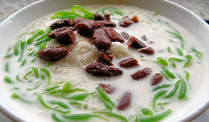 - Чендол – десерт из кокосового молока, пальмового сахара и рисового желе в виде зелёных червячков. Приправляется сгущенным молоком и красной фасолью (да, последнее тут едят сладким).