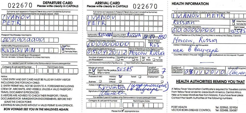 заграничный паспорт (со сроком действия не менее 3 месяцев, начиная с дня въезда на Мальдивы, и достаточным количеством пустых страниц);