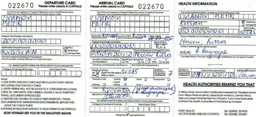 Для туристов на Мальдивских островах действует безвизовый режим. При въезде на Мальдивы виза россиянам не нужна. Въездной штамп в аэропорту Мале проставляется российским туристам без особых сложностей. Нужны следующие документы: