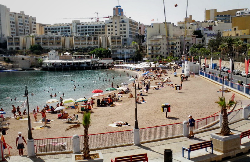Северная часть острова, где расположен Сент-Джулианс — это, в основном, каменистые пляжи. Единственный песчаный пляж здесь находится в бухте Святого Георгия. Уютная бухточка, золотистый песок и... очень много людей. Примерно с середины июня и до самой середины октября на пляже, в прямом смысле, яблоку негде упасть. Не удивительно, что многие люди предпочитают каменистые пляжи, как пишут в путеводителях. Такое количество людей обусловлено также непосредственной близостью района Пачевиль и скоплением английских школ.