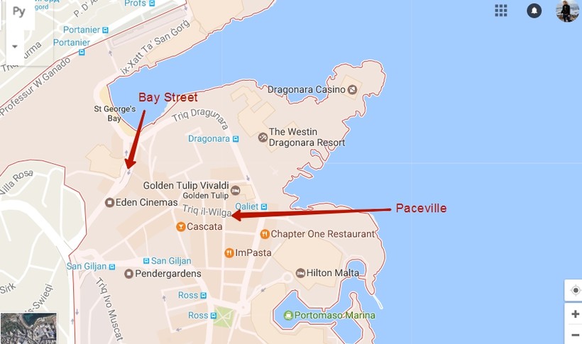 Разделение на Пачевиль и район бухты Святого Георгия географически очень условно. И все же Пачевиль — это то место, которое ни с чем не спутаешь. Во-первых, здесь, как уже говорилось, расположены английские школы, а потому соблазн поселиться поблизости очень велик. Однако помните, что, во-вторых, в большинстве путеводителей по Мальте пишут, что это «мекка развлечений». В определенном смысле так оно и есть. Здесь есть и кинотеатр на 13 залов, и дайвинг центр, и пляж. Но, в первую очередь, Пачевиль — это центр ночной жизни города. Если вы решили жить в этом районе, значит, вы смело и уверенно приняли решение не ложиться спать раньше, чем в шесть утра, и, может, иногда, по понедельникам, высыпаться.