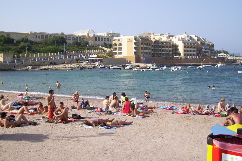 В этой бухте находится один из лучших песчаных пляжей всего острова. Это неудивительно, поскольку основная часть мальтийских пляжей каменистая, и они не могут похвастаться золотистым песочком. Само собой, такая особенность бухты привлекает сюда огромное количество туристов. Дополнительный приток обеспечивают близость района Пачевиль и скопление английских школ — сразу после занятий студенты бегут смывать полученные знания морской водой бухты Святого Георгия.