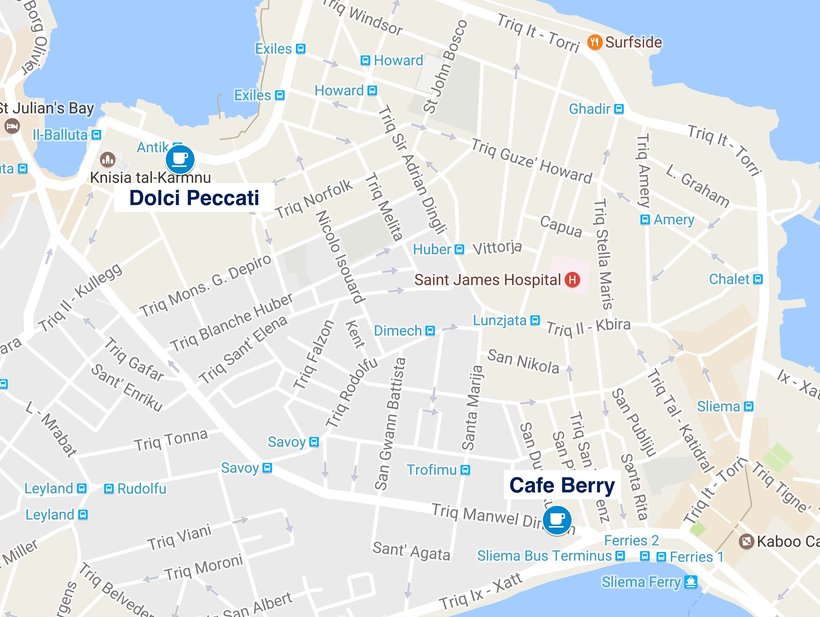 Самое мое любимое место, в которое я возвращалась снова и снова в Слиме —это пастицерия-джелатерия Dolci Peccati, которая принадлежит итальянцам. Здесь можно не только отведать вкусную выпечку, десерты и мороженое, но и пообедать за приемлемую цену, в этом заведении всегда много местных итальянцев.