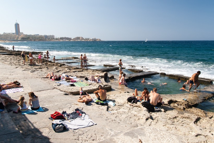 Купальный сезон на Мальте длится с мая по октябрь, высокий сезон — с июля по сентябрь, хотя купающихся можно наблюдать в течении всего года, т. к. даже в зимние месяцы бывают дни с температурой воздуха выше +20 °С, (хотя купающихся можно продолжать наблюдать и не в эти прекрасные жаркие дни), а температура воды в море никогда не опускается ниже отметки в +15 °С...