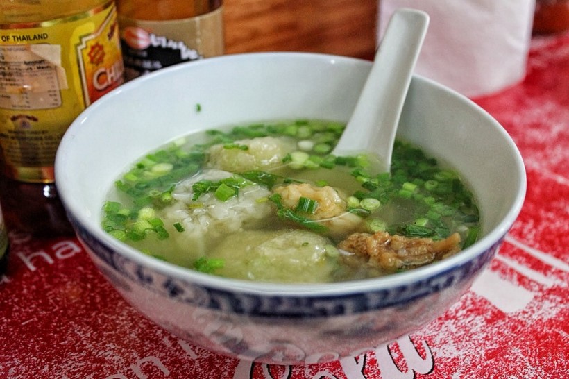 - Булетовый суп. Дим самы, классические китайские пельмешки на рисовом тесте, называются здесь булеты или булетовый суп. Сами "пельмешечки" могут быть крабовыми, рыбными, овощными или мясными. Обычно их едят с острым куриным бульоном и зеленым луком. Это очень простая еда, при этом острая и одна из моих любимых.