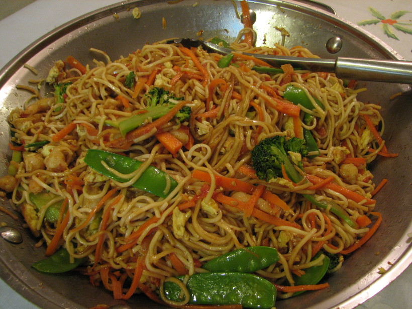 - Нудлс. Китайская лапша с разными добавками, обычно в меню есть как минимум три варианта: вегетарианская, со свининой и говядиной, с морепродуктами. Лапша подается со сладким китайским соусом и в некоторых вариациях приготовленным сверху яйцом.