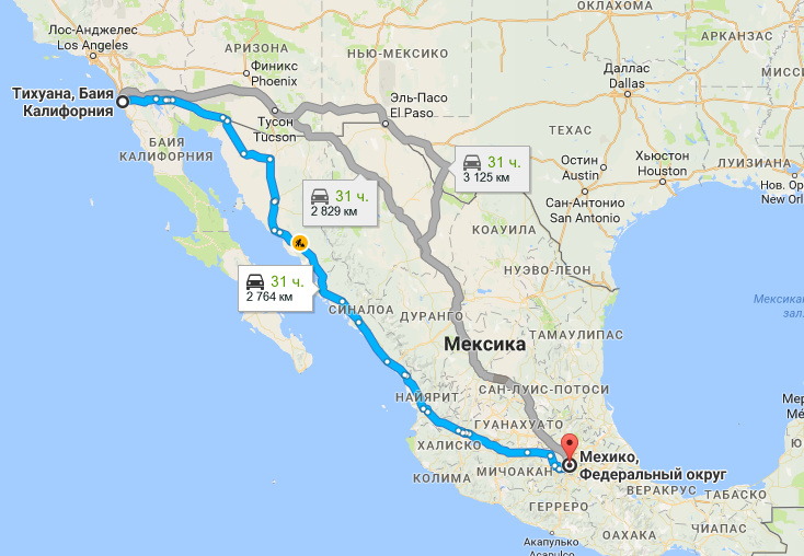 Из Соединенных Штатов Америки до Мексики есть несколько маршрутов: