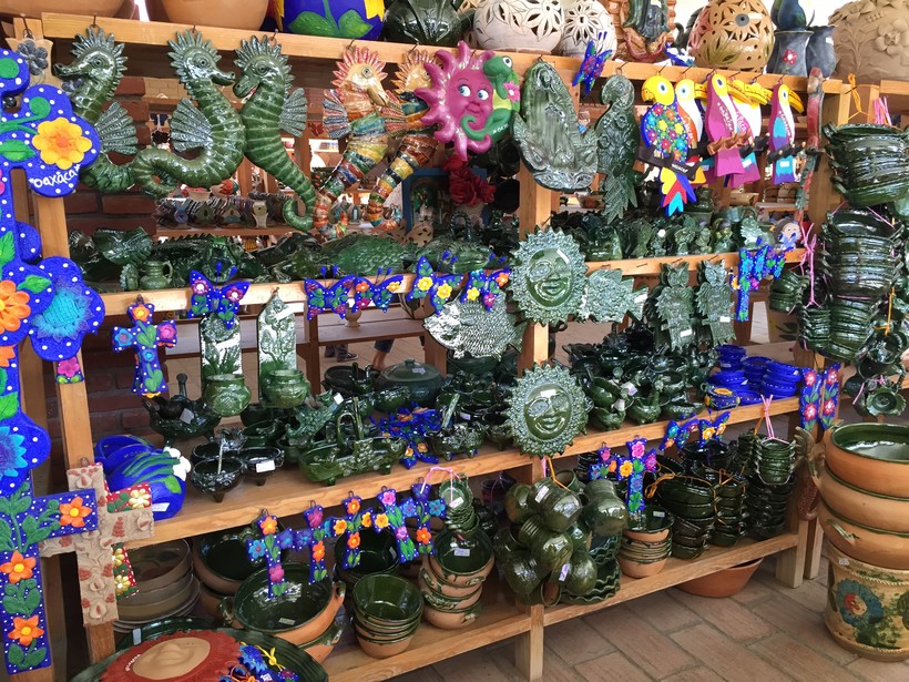 - Керамика. Из Пуэблы можно привезти сервиз в стиле гжель, а из Оахаки – черную керамику (кофейная пара от 20$). На каждом шагу продают календари майя и ацтеков из глины или гипса от 3$.