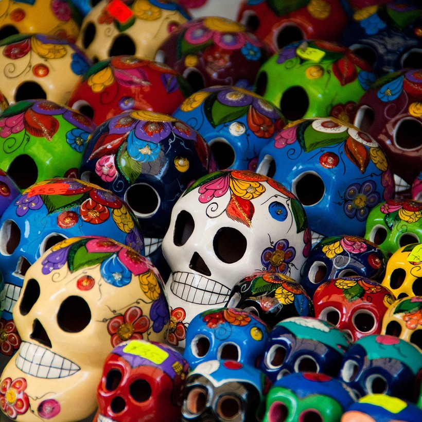 - Сувениры с черепами. Очень популярный в Мексике, а теперь и во всем мире, праздник, посвященный Дню Мертвых, обрел свое физическое воплощение в кружках, пепельницах, статуэтках и прочих изделиях. Временами попадаются не совсем безвкусные варианты. Стоимость стартует от 3$.