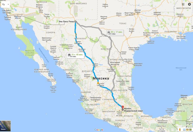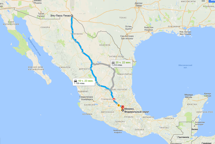 От границы до Мехико-сити путь неблизкий, придется ехать не меньше 20 часов от Техаса и 30 часов от Калифорнии. Имеет смысл воспользоваться автобусом, чтобы добраться до северных регионов Мексики или тихоокеанского побережья.
