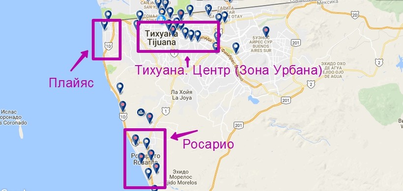 Тихуана — тусовочный американский курорт, очень многолюдный и достаточно грязный, не элитный. Очень многие мексиканцы выбирают отдых здесь, поближе к США, потому что у них это считается модным, а вот сами американцы приезжают в Тихуану вовсе не на пляжи, а в Центр, где много хороших отелей, ресторанов и баров.В Тихуане на пляжах мелкая галька или бледно-серый песок. Здесь нет инфраструктуры, душа или туалета, нет шезлонгов в аренду. Пляжи находятся в двух регионах с названиями Плайяс и Росарио.Стоимость номера здесь начинается от 40–60 USD. В Центре Тихуаны находятся дорогие и большие отели именитых брендов, стоимость номера в которых обычно в районе 100–200 USD. Есть отели с полным пансионом.