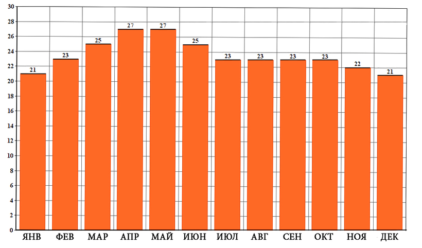 Погода в Мехико отличается мягкостью и, на мой взгляд, идеально подойдёт любому туристу. Проиллюстрирую своё мнение наглядными диаграммами.