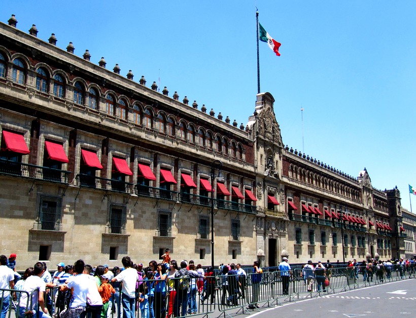 Как я говорила, данное архитектурное сооружение выполнено в стиле барокко и радует глаз пышностью и торжественностью, от которых невольно проникаешься уважением к возведённым в 1562 году стенам. Изначально Национальный дворец был местом проживания вице-короля Мексики. С приобретением страной статуса независимости здание стало резиденцией Бенито Хуареса. Дворец успешно играл роль политического центра и музея, двери которого открыты туристам и по сей день.