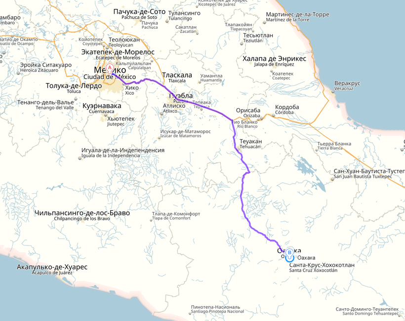 Путь от столицы до Оахака-де-Хуарес обойдется примерно в 23 $ (430 MXN) по трассе 135D. Плюс расходы на бензин (0.5 $ или 10 MXN за литр).